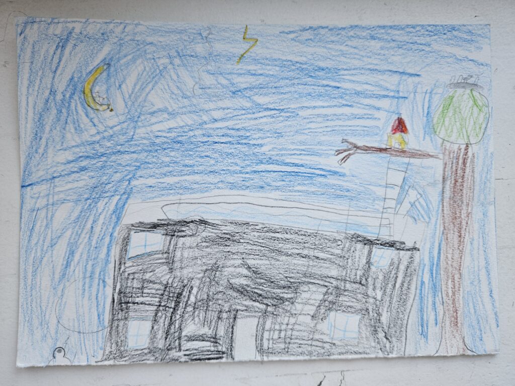 Keset pilti on suur tumehoone, mille aknad säravad sinakalt. See võib olla tarkmaja – ehk tegu on tulevikuelamuga, mis juhib ise oma kütet, valgust ja isegi meeleolu vastavalt elanike soovidele. Tumedad seinad vihjavad energiasäästlikule materjalile, mis neelab päeval soojust ja hoiab seda ka öösel. Maja alumisse nurka on peidetud ka väike inimene, kes võib sümboliseerida vaatajat ennast – ta seisab hoone kõrval, vaadates üles suursuguse arhitektuuri poole.