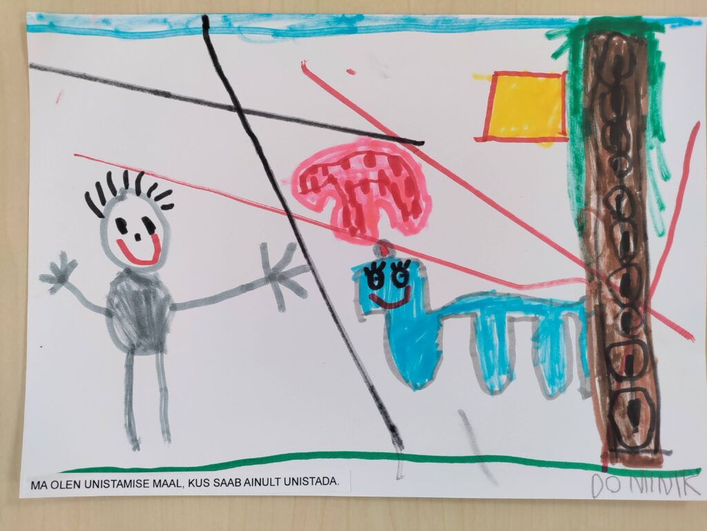 Sellel pildil on kujutatud fantaasiamaailm, mida autor nimetab „unistamise maaks, kus saab ainult unistada“. Vasakul seisab naeratav inimene, käed laiali, justkui valmis kallistama kogu seda värvikat ja imeliku kujuga maailma. Paremal on sinine loom, võib-olla fantaasiapõhine draakon või kassilaadne olend, kes naeratab samuti ja kelle kohal on roosa pilv või puu.